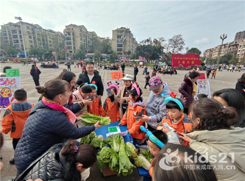 当天,“地摊义卖”一开市,“梦幻奶茶店”“梦想小屋”“花的世界”“无忧小店”等一个个别具特色的摊位就陆续出摊了,小小商贩们在家长的陪同下“各就各位”,小小地摊上堆满各式各样的玩具及书籍、手工艺品、特色小吃等,有的摊位甚至开起了“农贸市场”卖起了绿色蔬菜,醒目的广告语“留下您的爱,带走您的菜”也颇有感染力,深得大妈们的青睐。