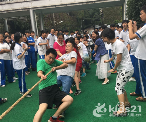 激动人心的决赛终于到来,两个班摆好阵仗,摩拳擦掌。一声令下比赛开始了,站在最后的“秤砣”憋足了劲往后扯,胖子们脸上的肉摇摆在风中,绑着纱布的手暴起青筋。终于,在抛弃所有形象,用光所有表情,费劲全身力气之后,五班以2:0的绝对优势秒杀九班。全场沸腾了,“五班加油”的声音响彻云霄。而在五班元气大伤时,教师们很不仗义的提出要和冠军队一觉高下。