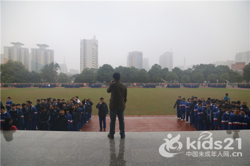 这次演练活动也得到了天心区人防大队的鼎力支持和具体指导。在演练伊始,人防大队工作人员就在教学楼拉起了防空警戒线,在教学楼上放置了演练用的相关物件。随着"嘟、嘟嘟⋯⋯"三声刺耳的鸣空笛响,"56秒,1分17秒⋯⋯"教育科毛艳辉主任的大声报数,初一,初二,二个年级的学生分别在最短的时间内从各个楼层各个教室安全迅速规范有序地小跑集中在运动场。
