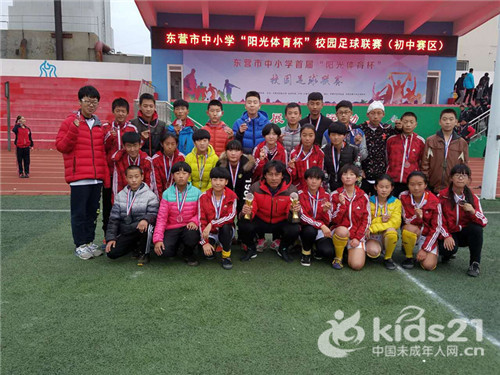 未成年人网山东讯(陈晓东)东营市中小学“阳光体育杯”足球联赛近日在实验中学开赛。经过激烈的角逐,东营区三中女队以大比分的优势获得冠军,男队获得季军。区三中是全市男、女两支队伍同时进入前三名的唯一一所学校。