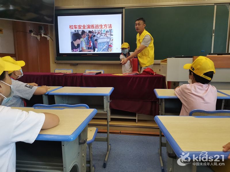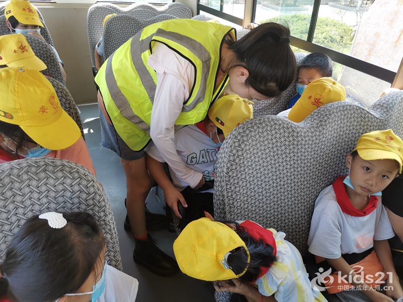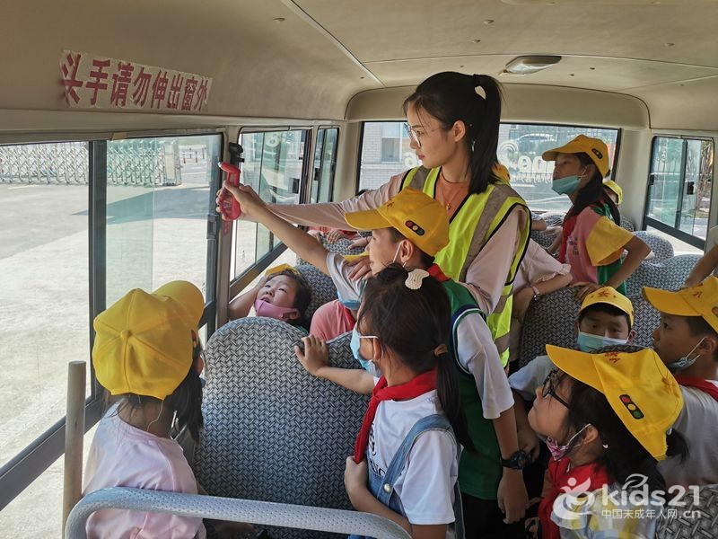 为了加深印象,检验培训效果,活动最后还进行了现场实践体验练习。随车教师带领学生分别进行了“上车乘坐、安全带使用、应急逃生锤使用、车辆故障紧急疏散”实操演练,然后下车点名测温,组织引导学生有序上车,并提示学生落座后马上系好安全带,并对安全带进行逐一检查,确保每名学生都已按要求系好安全带后,示意驾驶员开车。接着模拟车辆发生油电路故障,引发初起火灾,进行师生校车紧急疏散演练,随车教师发布指令:“车辆故障,立即疏散”,引导老师利用应急手动开关打开乘客门后引领学生开始撤离。要求学生面向疏散门方向,按车厢过道两侧先左后右,再左再右的次序,每次一整路纵队疏散到临时聚集区。