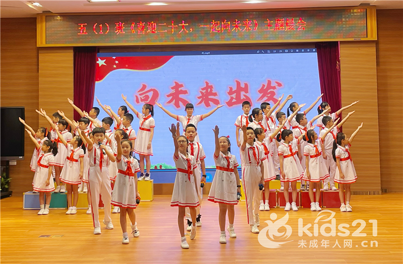 “一条大江的命脉在源头,一个国家的未来在青年。我们是青春少年,是百川中最有力的后浪。”队员们用铿锵有力、掷地有声的朗诵《向未来出发》道出了全体少先队员脚踏实地、开足马力,向着美好的未来出发的共同心声。