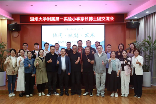 为深化家校共育,汇聚顶尖智慧,赋能学生成长,2025年10月20日晚,温州大学附属第一实验小学成功举办了“协同·赋能·发展”家长博士团分享交流会。学校领导与来自各行各业的博士家长们齐聚一堂,畅所欲言,共话教育未来。
