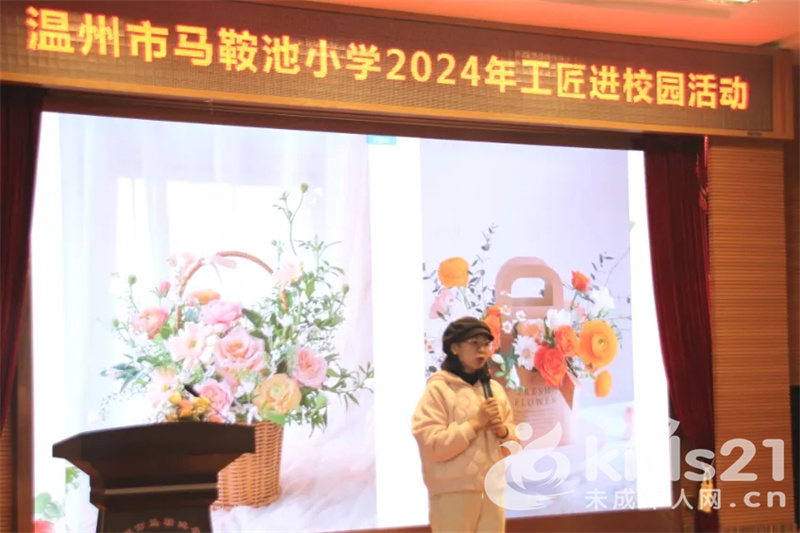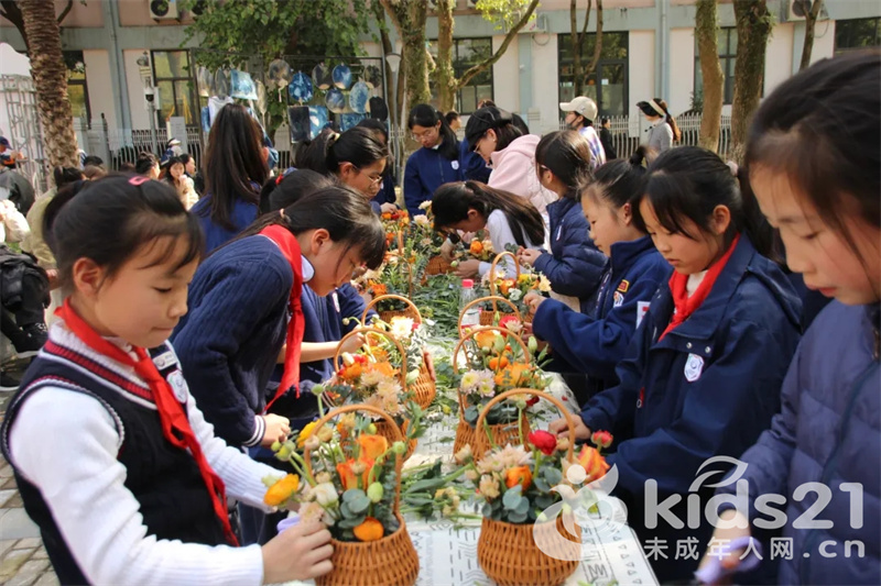 三、四年级段全体师生集中报告厅聆听来自瓯之韵花艺工作室的高祥祥老师的插花艺术讲座。高老师从中式插花入手,深入浅出地讲述了中国的古典插花艺术,并教他们如何搭配花材、设计花束,引发同学们的美学思考。