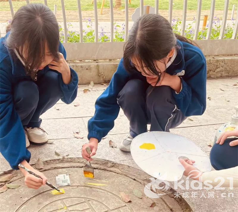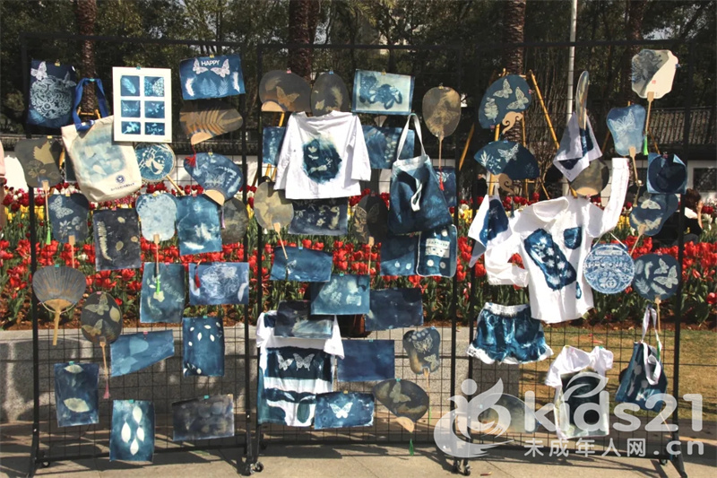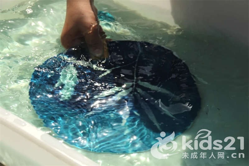 同时,马鞍池小学陈方白副校长也带领一、二年级的小同学们开展了蓝晒活动,教授他们制作蓝晒作品的技巧和方法。在阳光下,同学们用心地涂抹蓝晒液,摆放各种形状的物品,等待蓝晒的神奇变化。他们兴致勃勃地参与其中,享受着手作的乐趣和成就感。