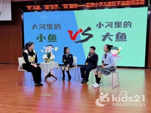 11月18日哲思主题晨会上,有孩子与家长一起呈现“做大河里的小鱼,还是小河里的大鱼”的家庭微哲学,也有孩子们一同讨论,碰撞思维的小剧场。
