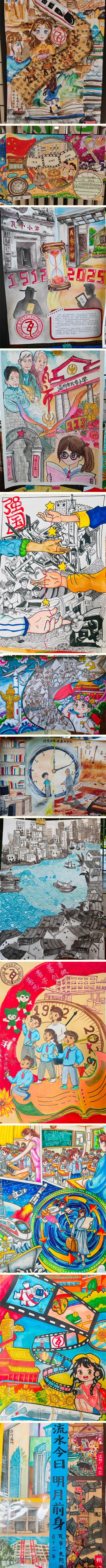 当童心与哲思碰撞,当艺术与德育交融,这场关于时间的探索之旅,不仅为瓦小学子的童年留下了斑斓印记,更在他们心中播下了思考与成长的种子。正如孩子们在画作中所展现的,时间不仅是钟表上的刻度,更是亲情的纽带、成长的见证、家国的记忆——这便是瓦小给予孩子们最珍贵的时间礼物。