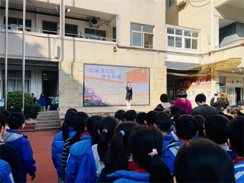 “廉洁是什么?是借同学橡皮及时归还,是食堂吃饭把餐盘吃干净,是考试时不作弊……”四(16)班张乐妍同学的国旗下讲话,用一个个发生在校园里的小故事,将“廉洁”这个看似抽象的词汇变得具体鲜活。她的分享引发了台下同学的强烈共鸣,不少孩子听完后悄悄点头,若有所思。