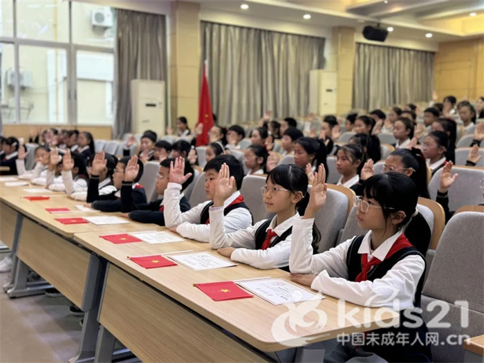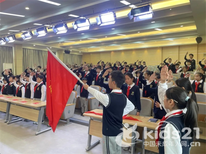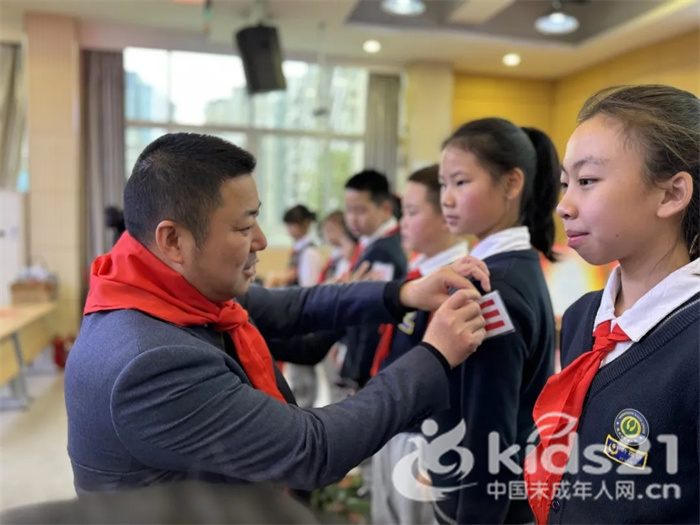 在学校少先队大队辅导员聘任仪式中,苏小影、夏小珍、洪叶子、陈晓路等老师接受了聘任。随后,新一届大队委员会的104名委员在大会上接受了庄严的授章仪式。