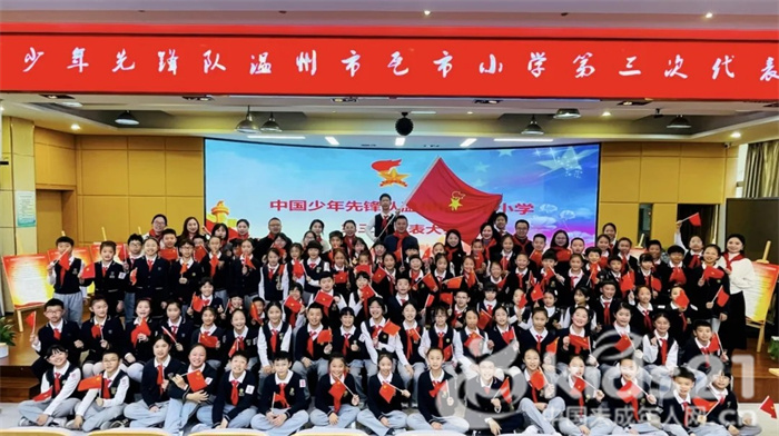 2025年12月31日下午,在庄严的队歌与飘扬的队旗下,中国少年先锋队温州市瓦市小学第三次代表大会在育英校区召开。本次大会以“传承红色基因,培育时代新人”为主题,来自全校四个校区的114名少先队员代表齐聚一堂,共同参与并见证了这一属于全校少先队员的民主盛会和政治生活大事。