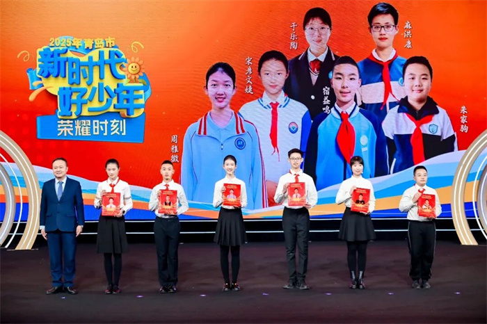 中国好人、全国少工委委员林风谦,2025年全国“最美教师”邵瑜,2025年“青岛拔尖人才”、青岛市京剧院国家二级演员时增帅,山东极视角科技股份有限公司联合创始人兼总裁陈硕,中国好人、全国最美生态环保志愿者徐立强,巴黎残奥会跆拳道项目金牌获得者、青岛籍运动员李羽洁,为30位好少年颁奖,并结合自身经历寄语好少年们不负韶华、坚守热爱、勇敢追梦,以真才实学为家乡添彩、为祖国争光。